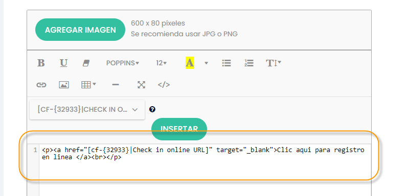 Nombre del campo personalizado: Check in online URL (ejemplo)