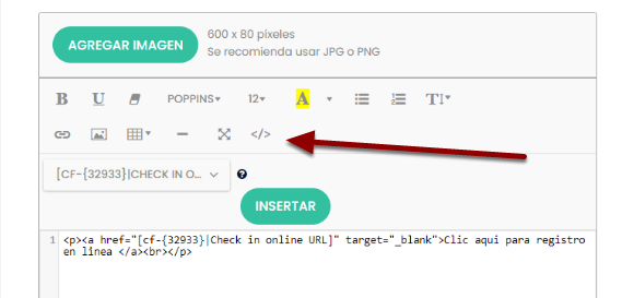 3. Para agregar los placeholders hacemos clic en el campo resaltado: