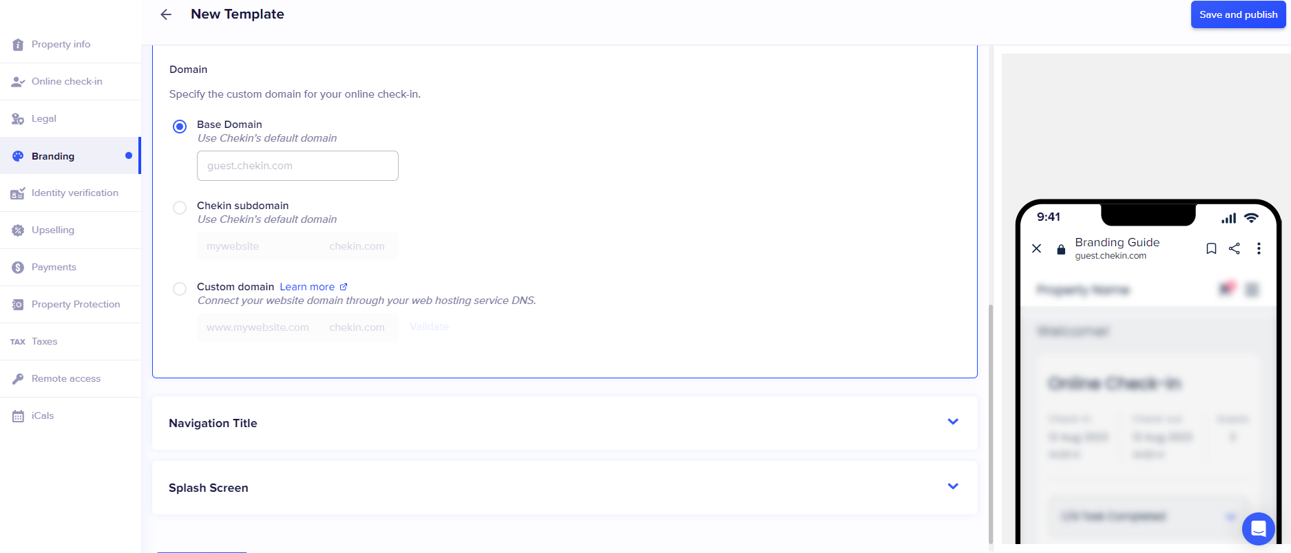 Dominio base: será la URL por defecto de Chekin "guest.chekin".