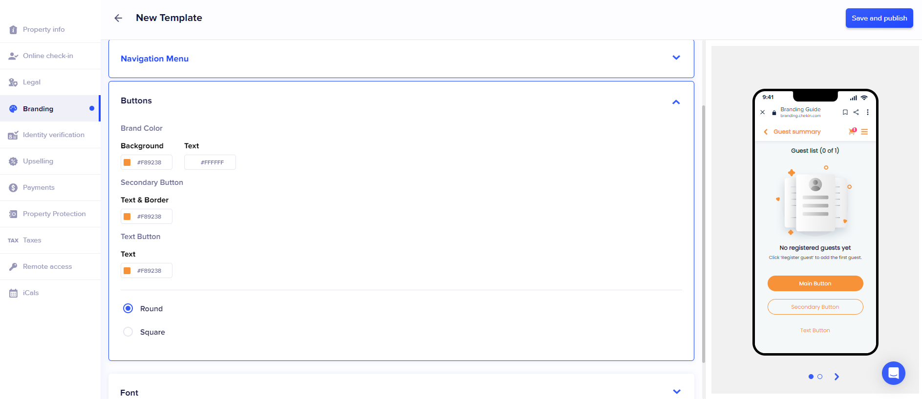 En la sección Estilo, hay 4 opciones de configuración donde puedes adaptar la guestapp al tacto y sensación de tu marca.