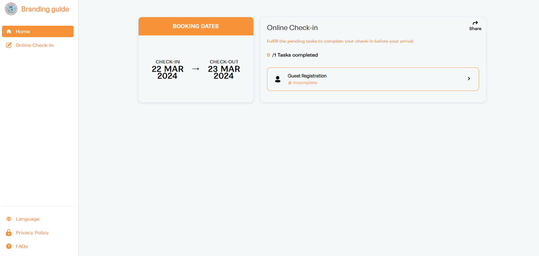 Actualizado hace más de un añoContar con una plataforma de check-in personalizada que incluya la marca de tu empresa se traducirá en una mayor fiabilidad y en un aumento del porcentaje de huéspedes que realizan el check-in online. Al ser más fiable para el huésped, es más fácil que se sienta seguro a la hora de facilitar sus datos personales a través del proceso de check-in online.