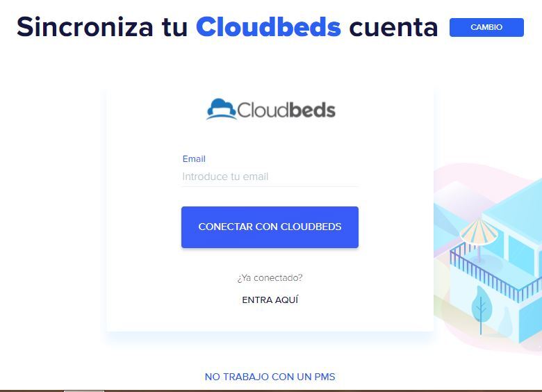 4 - Agregue el correo electrónico de su cuenta de Cloudbeds y haga clic en CONECTAR CON CLOUDBEDS.
