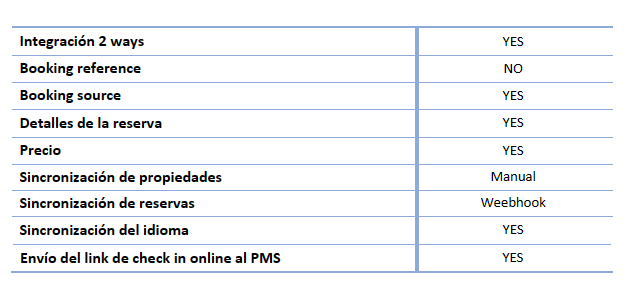 ¿Qué información se sincroniza con Chekin a través de esta integración? En la siguiente tabla mostramos las especificaciones de esta integración para que puedas entender mejor cómo funciona y qué puedes esperar de la integración una vez hayas creado tu cuenta.