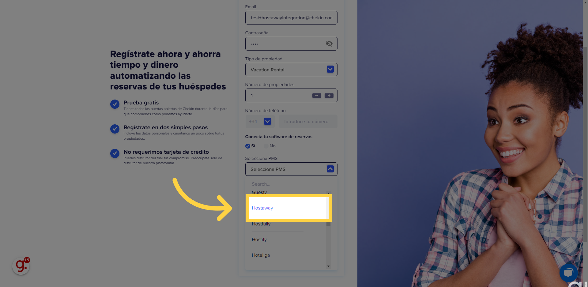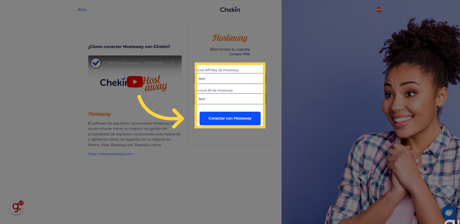 La conexión con Hostaway debe realizarse en el proceso de creación de la cuenta.