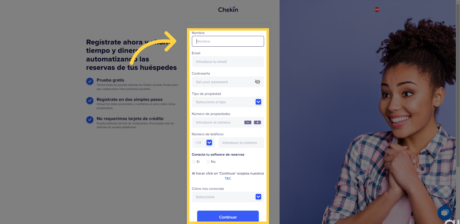 Nota: Si ya tienes una cuenta de CheKin sin la integración, ponte en contacto con nosotros a través del chat o enviando un correo electrónico a [email protected] para obtener más ayuda.