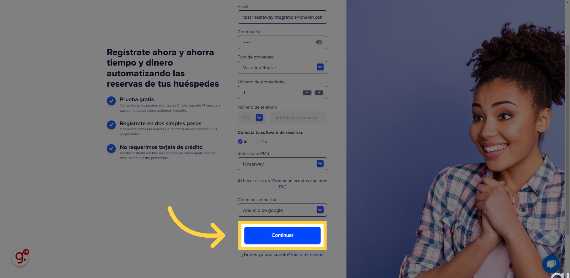 Ya soy usuario de Chekin, ¿puedo usar mi cuenta existente para la integración de Hostaway?