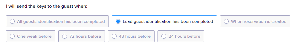 Después de eso, tendrá que seleccionar cuándo desea enviar la clave virtual a los invitados. Le sugerimos que elija la opción "Se completó la identificación del invitado principal":