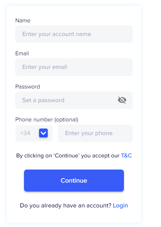 Nota: si ya tienes una cuenta de Chekin creada, ponte en contacto con el soporte para obtener más ayuda.