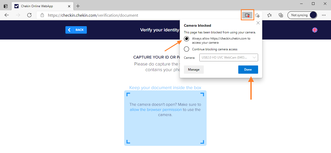 Actualizado hace más de 2 añosSi estás utilizando el escáner de Chekin por primera vez en Microsoft Edge, será necesario permitir el acceso a la cámara en este navegador.