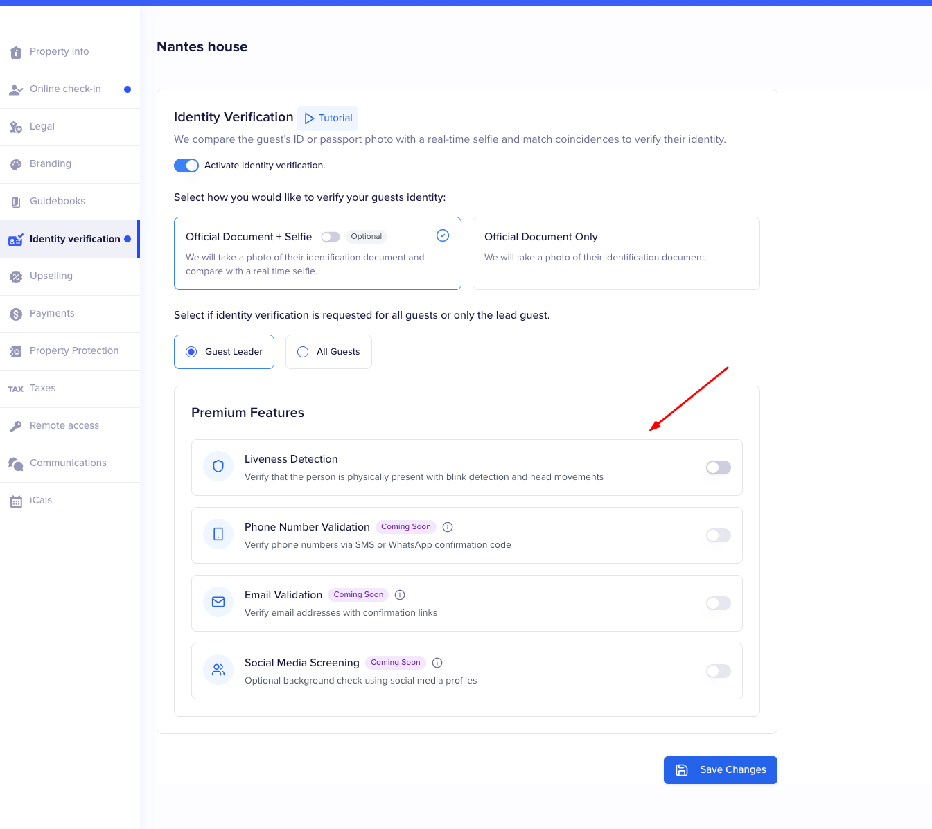 La verificación de prueba de vida se puede activar como parte del proceso de identificación del huésped. Es especialmente útil para propiedades o gestores que necesitan un nivel de seguridad más alto o deben cumplir con normativas específicas.