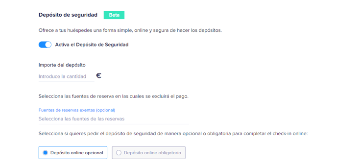 Se si seleziona Obbligatorio, l'ospite principale dovrá pagare il deposito per continuare; in caso contrario, non potrà proseguire con il resto del processo o effettuare il check-in degli altri ospiti.