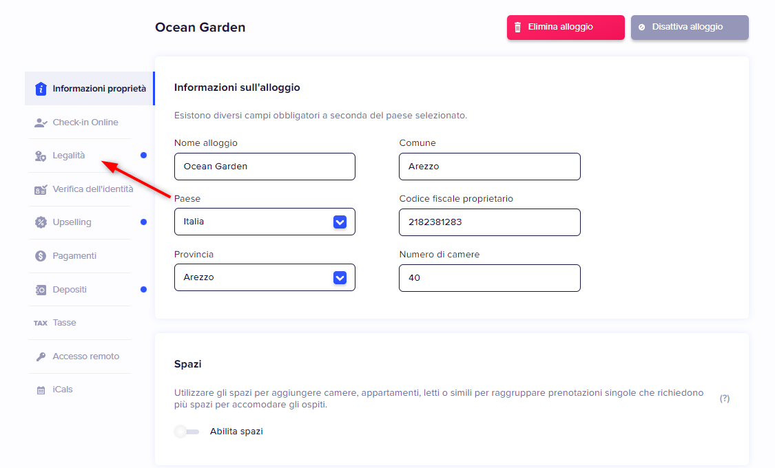 3. Dopo aver selezionato l'alloggio, vai alla sezione "Legalità".