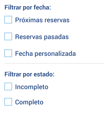 Dopo aver creato la prenotazione, dovrai cercarla nell'applicazione per aggiungere i dati dei tuoi ospiti. Per farlo, clicca sul pulsante "prenotazioni" nel menu. In alto a sinistra troverai il pulsante per filtrare, che aprirá un nuovo menu e ti consentirá di selezionare vari filtri.
