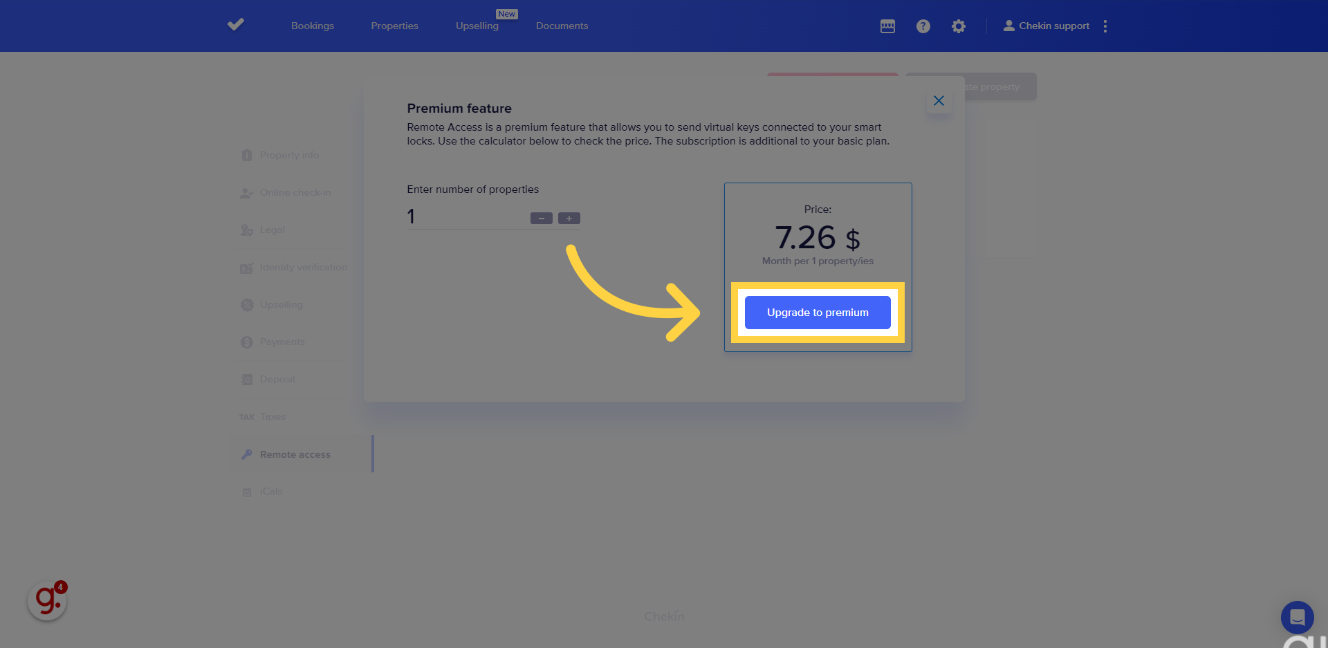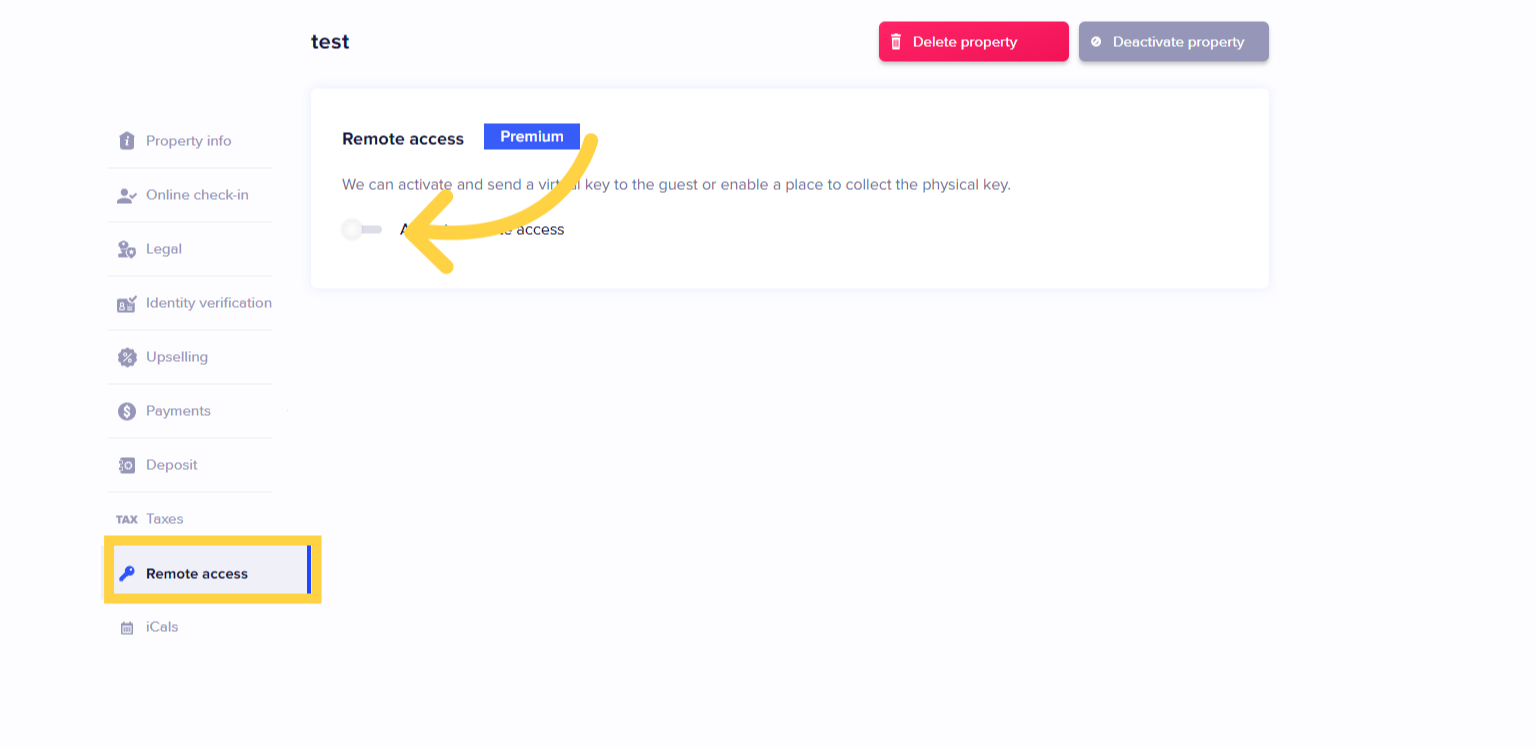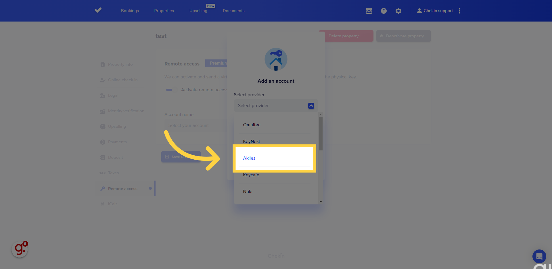 Puoi collegare il tuo account Chekin ad Akiles nella sezione "Accesso remoto" della tua proprietà.