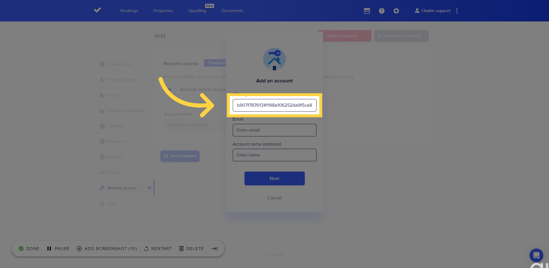 Puoi collegare il tuo account Chekin a KeyCafe nella sezione "Accesso remoto" della tua proprietà.