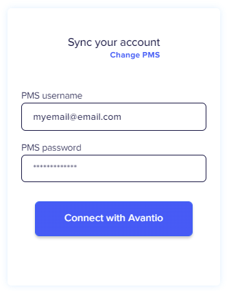 3 - Next, add your Avantio username and password and click on Connect with Avantio button to start the connection process.