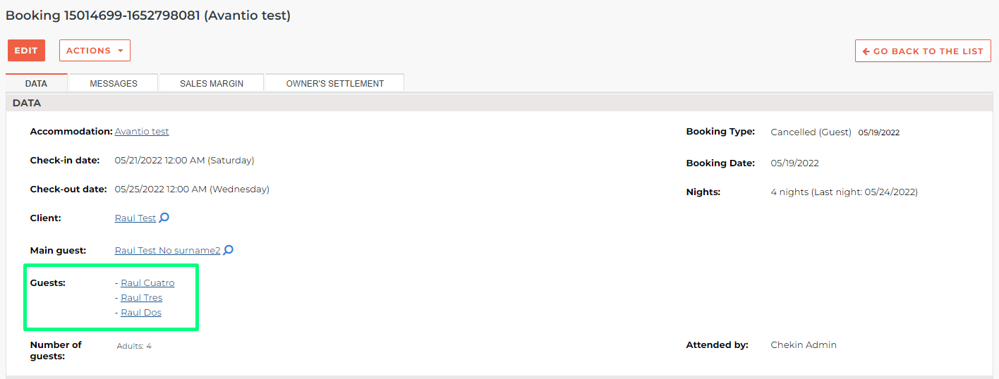 Guest data in Avantio