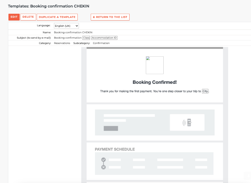 Before doing that it is important that you configure an email "template", which in the picture is named as "Booking paid" and in that email template of course you have to include the link of virtual keys.