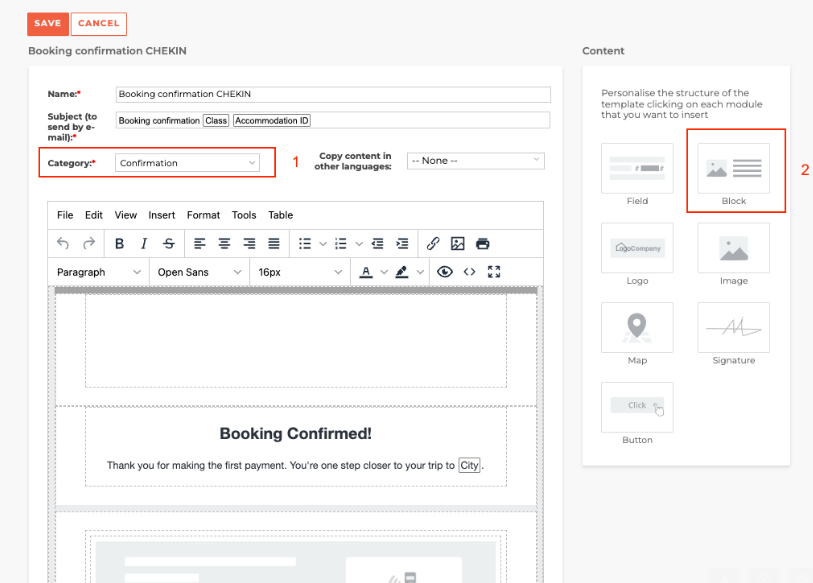 click on Edit and select in the category field the option "Confirmation";