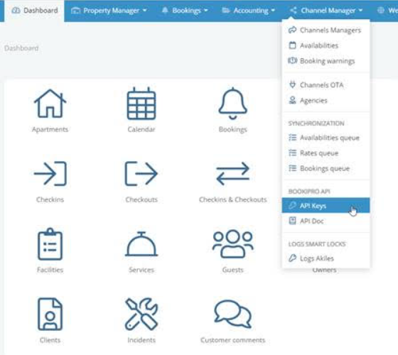 1 - From admin panel go to the Channel Manager module and click on API Keys option