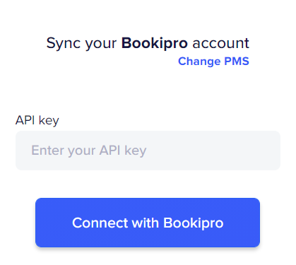 3 - Next, add your Bookipro API key and click on Connect with Bookipro button to start the connection process: