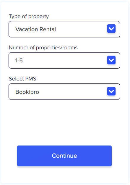 2 - Complete the business information required and select Bookipro in the list of PMS. Click Continue.