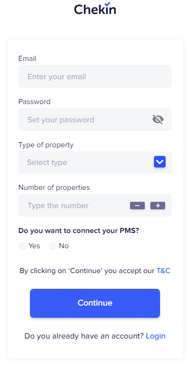 Once you connect to Chekin you have a trial period of 2 weeks where you can register all the guests you receive in your accommodations.