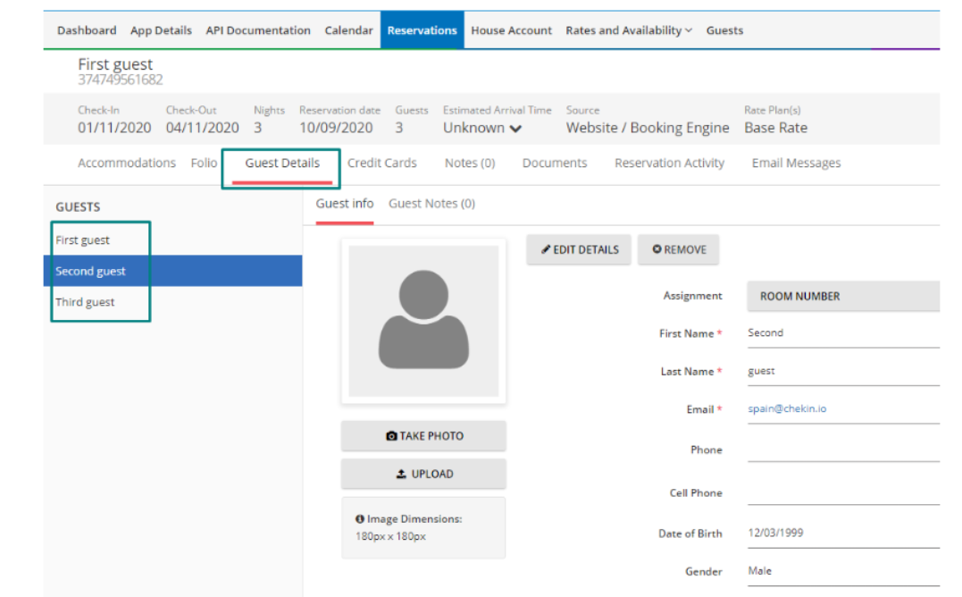 Yes! Anytime a guest completes the online registration you will be able to see its data not only in CheKin Dashboard but also on your Cloudbeds account in the tab Guest Details of Reservation Section:
