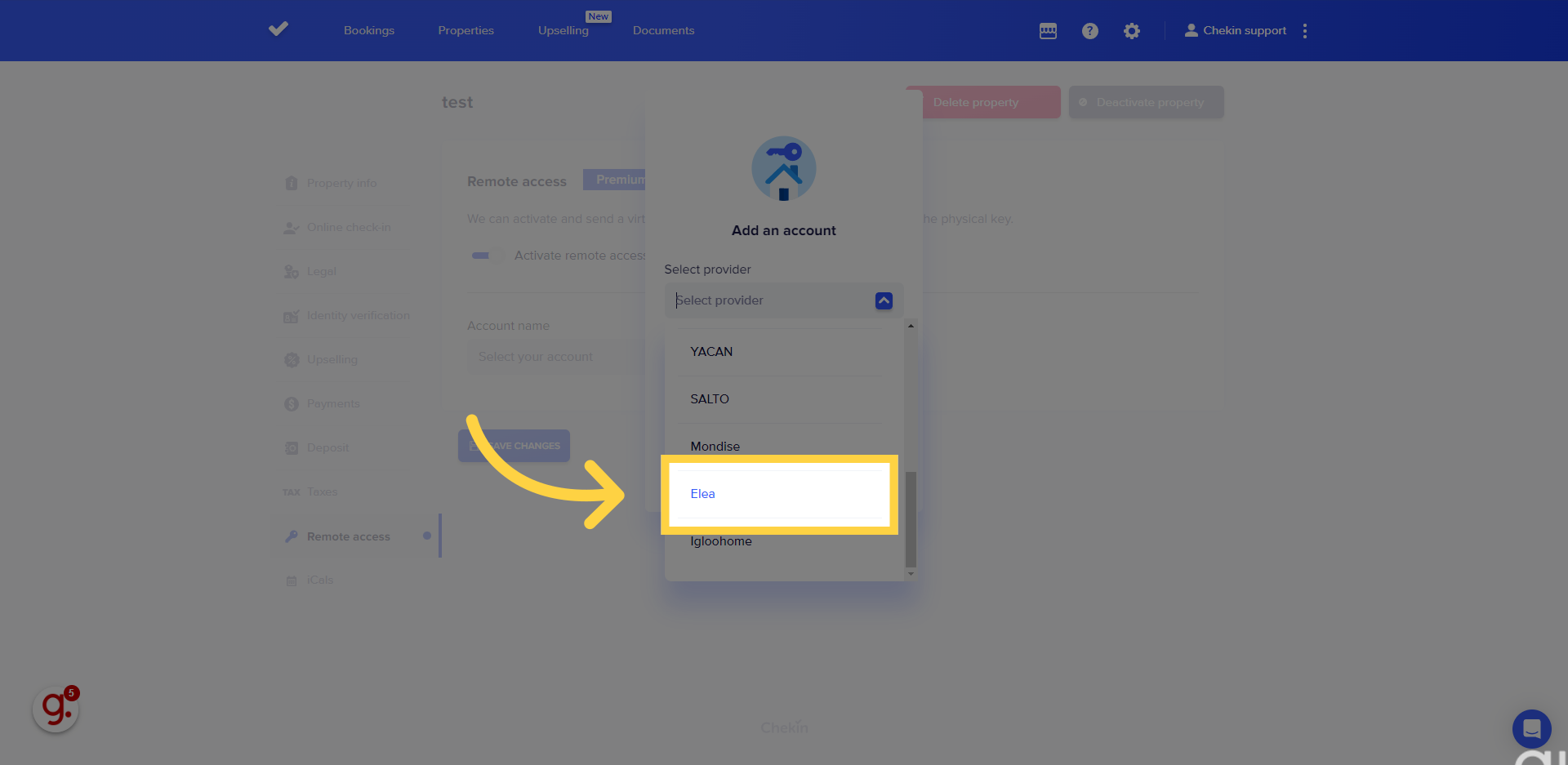 You can connect your Chekin account with Elea in the Remote Access tab of your property