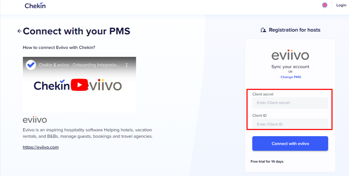 Welcome! We are glad you have opted for our solution! This is a quick guide to help you connect your Eviivo account to Chekin and configure your Chekin account properly.