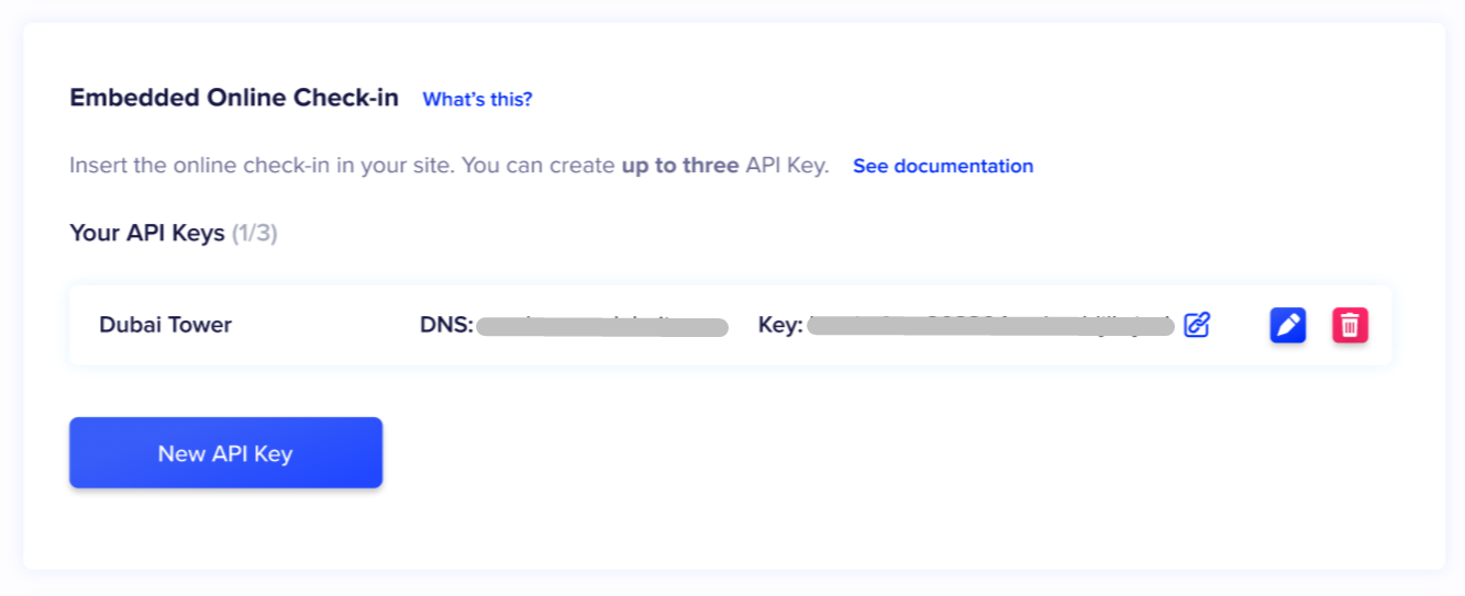Get the API key to use the embedded online check-in within your web page