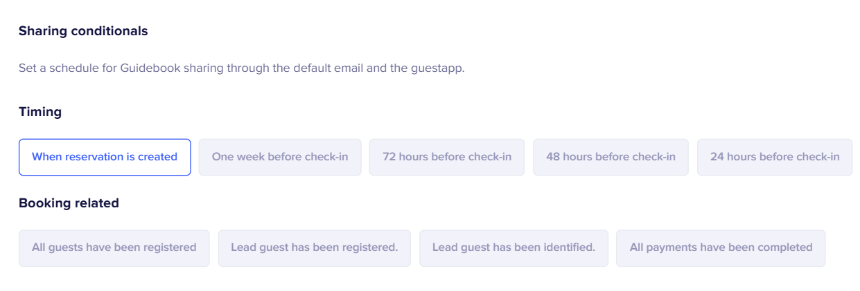 You can choose from the below conditions to be met before the guest receives access to the guestbooks;