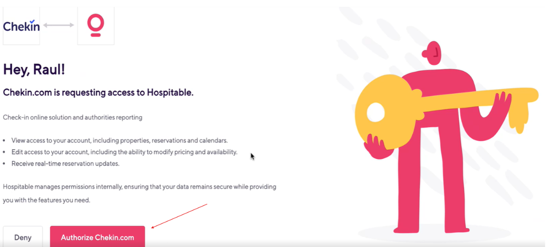 8. Once logged in to Hospitable, click on "Authorize Chekin.com".