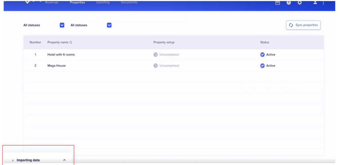 11. After a few more minutes, the properties and bookings will be fully synchronized.