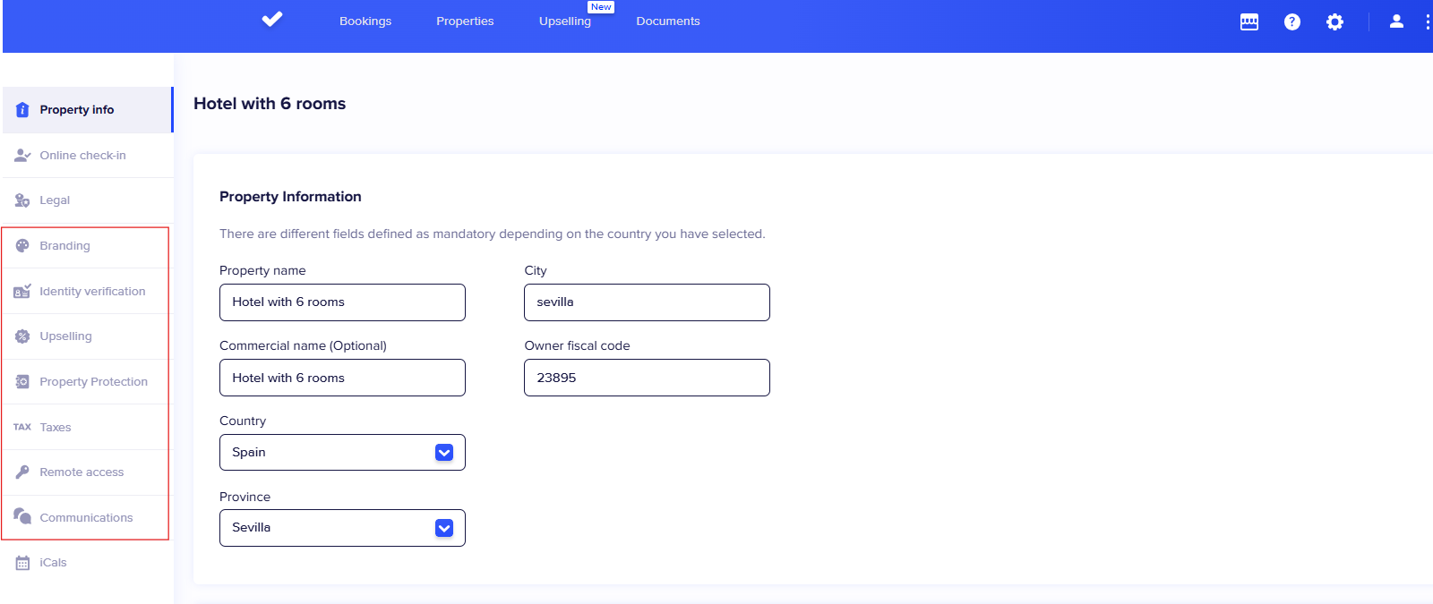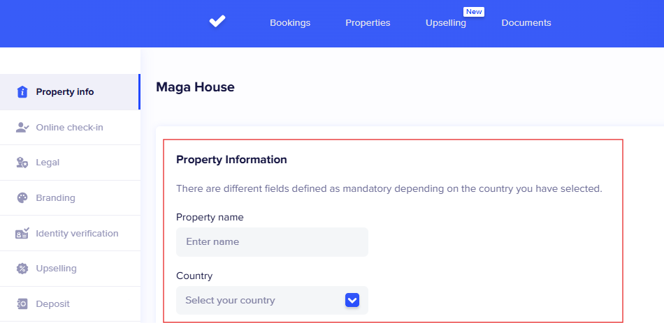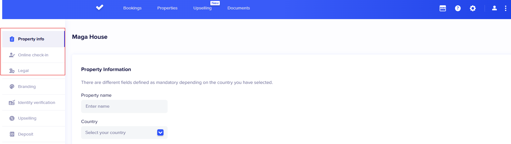 12. Go to Properties, select a property by clicking on its name, and complete the following sections: Property Information, Online check-in, and Legal. Please note that you will need to complete these steps for each of your properties.