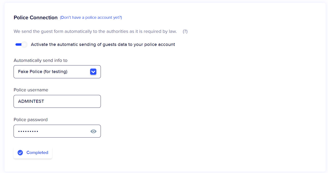 We attach here a video that explains how to activate the police connection: https://www.youtube.com/watch?v=6EYCpqoWN54&ab_channel=Chekin