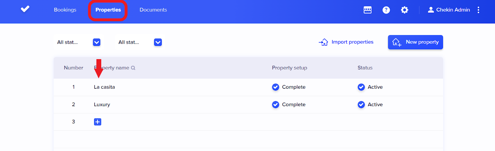 1 - You must go to the dashboard and access the "properties" tab and enter the property.