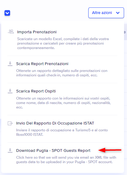 3. Select "Download Puglia - SPOT Guest Reports" from the options;