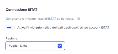 4. At the bottom you will see the ISTAT functionality, after activation you must select the option 'Puglia - DMS';