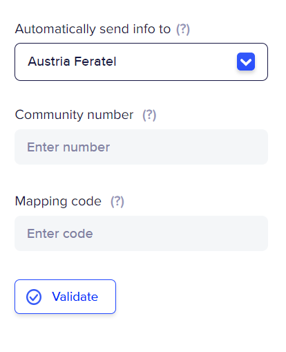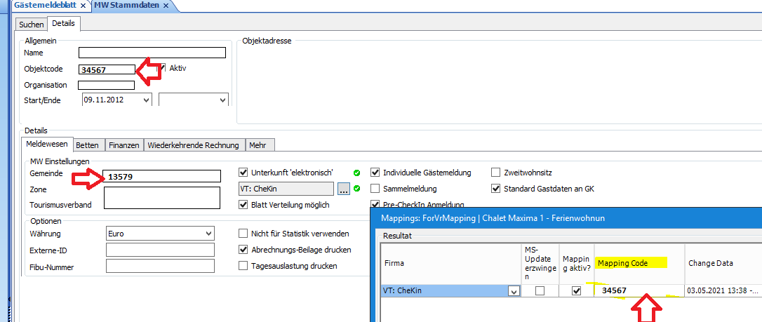In order to connect Chekin to your Feratel account you first have to reach out to the municipality office and tell them you will send data to Feratel through Chekin (company code VT: CheKin). They will have to activate on your Feratel account the connection to Chekin and provide you with a community number (Gemeinde) and a mapping code (Objektcode).