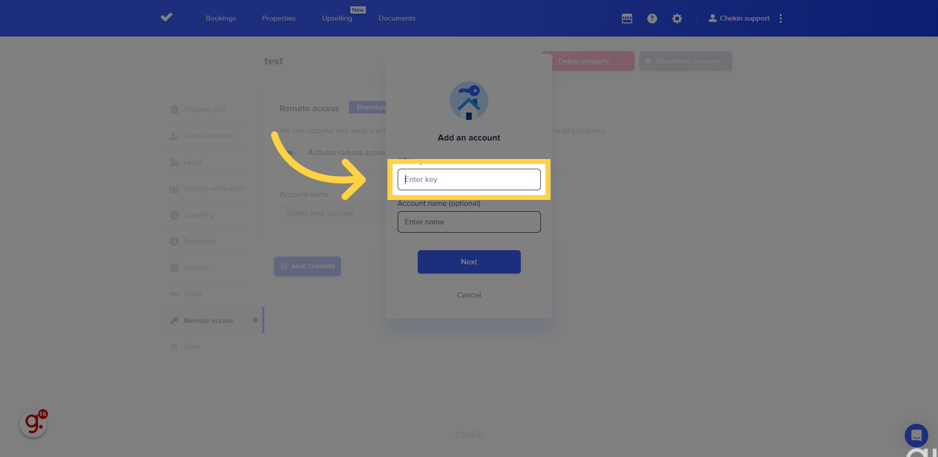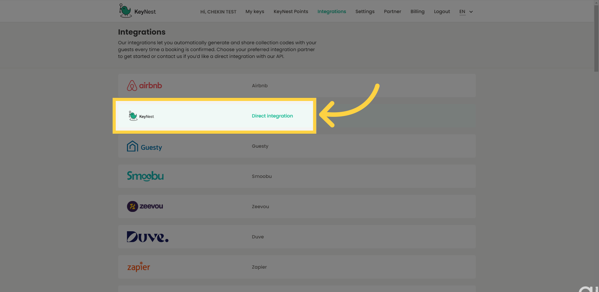 You can connect your Chekin account with KeyNest in the Remote Access tab of your property