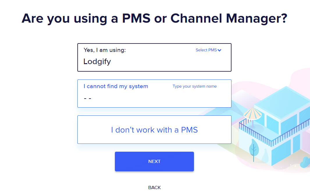 3 - You will be asked if you use any PMS or Channel Manager, select Lodgify and click on NEXT: