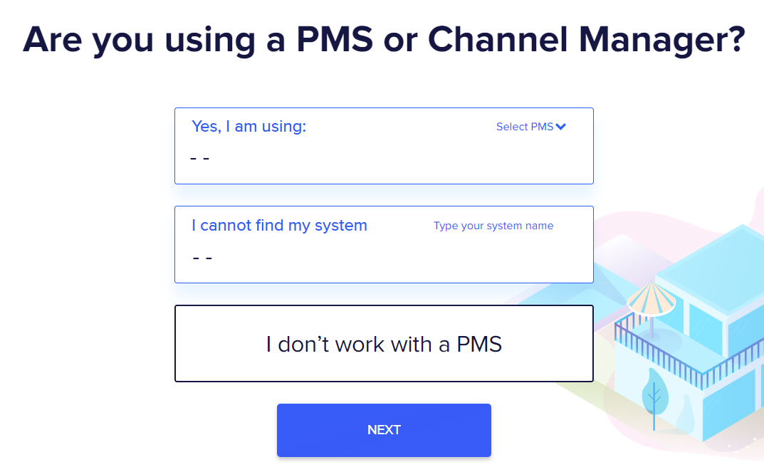 3 - In the next screen select "I don't work with a PMS" and click on NEXT: