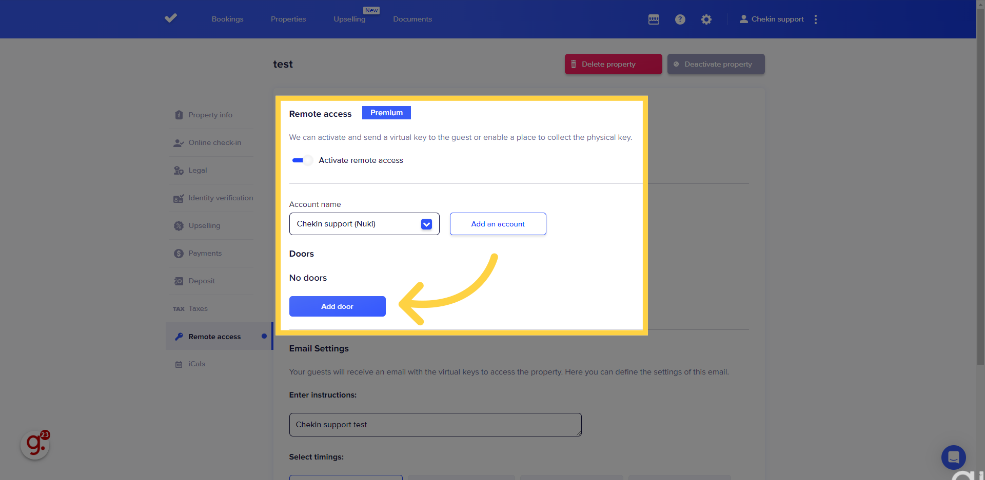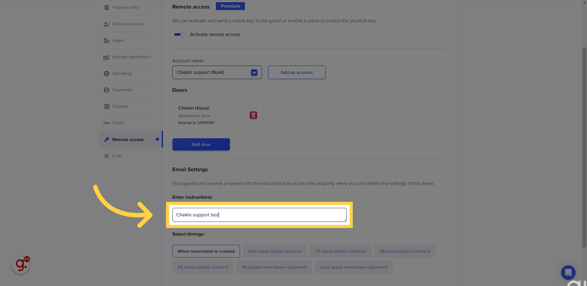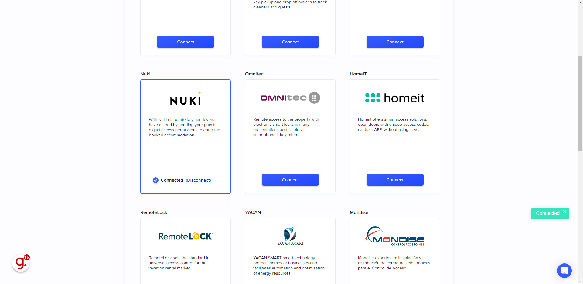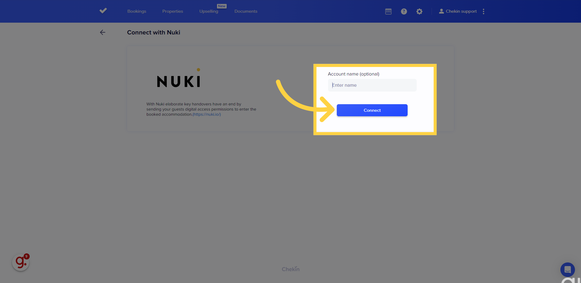 You can connect your Chekin account with Nuki in the Remote Access tab of your property