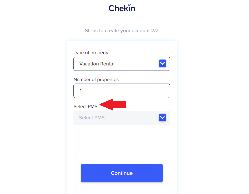 3 - You will be asked if you use any PMS, select your PMS and click on continue.