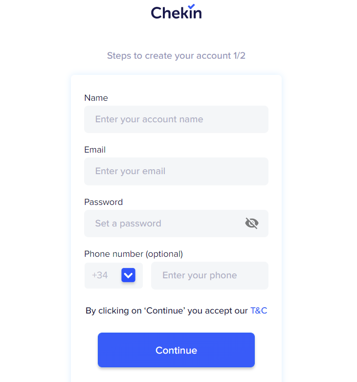 First you have to register an account with Chekin. To do so, just follow these simple steps: