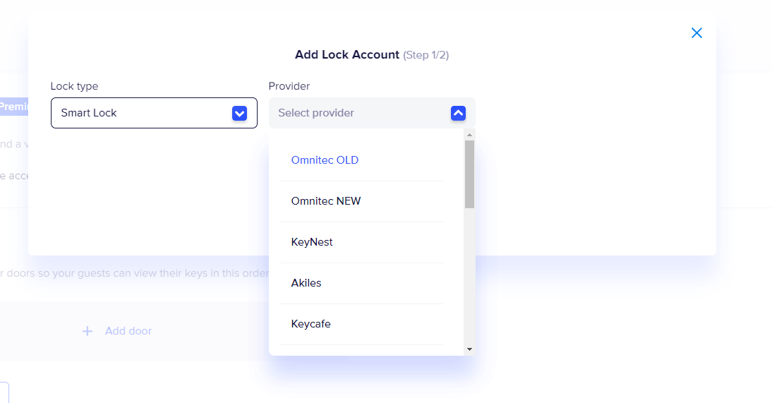 Click on "Add door" in the Remote Access tab. You can salect the lock opening type: