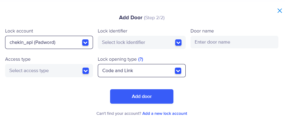 Note: if you have a hotel type account, you have the possibility to add a common door and several private doors linked to your spaces.