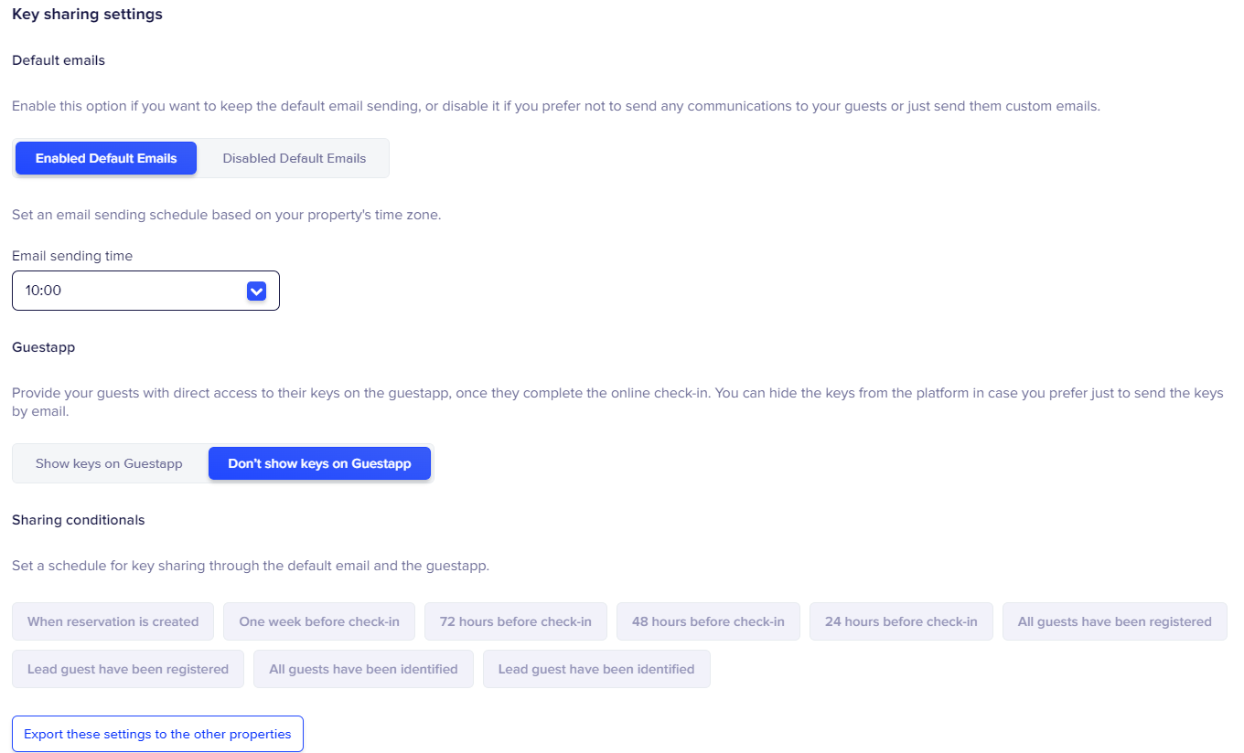 You can select which condition has to be met to share the keys, the most recommended would be "all guests have been registered".