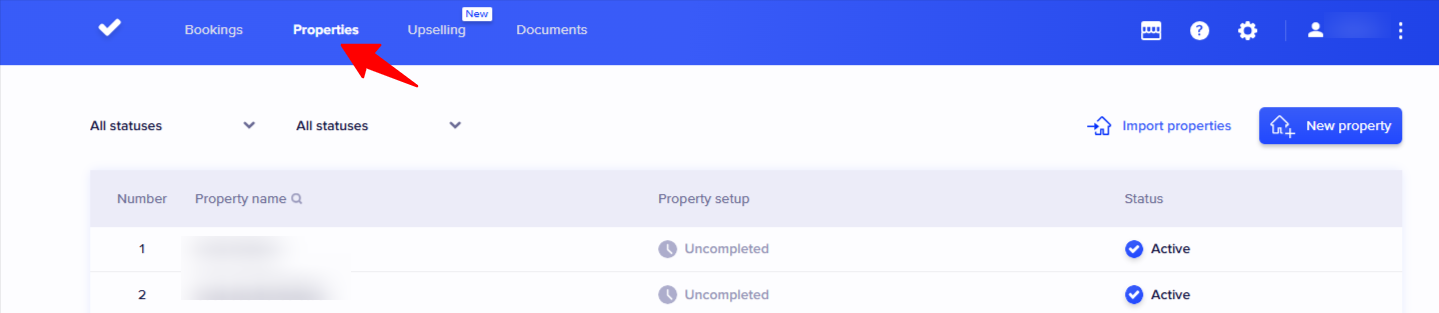 Step 1. Login to your Chekin account and click on ´Properties´.